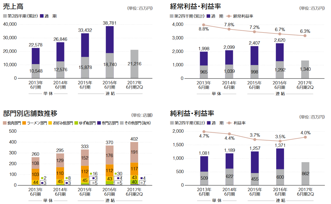 今のところは1店舗当たりの売上高も伸びているので大きな問題はないと思いますが、なんせ競合だらけで景気変動の影響も受けやすい外食産業。