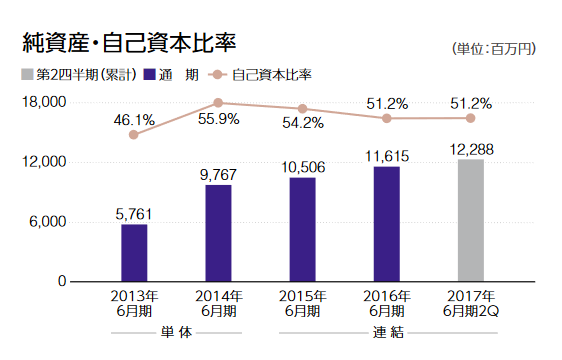 これだけ利益が出ていますので、当然のことながら今までの利益の蓄積ともいえる自己資本の額は増えていっていますが、自己資本比率は横ばい。