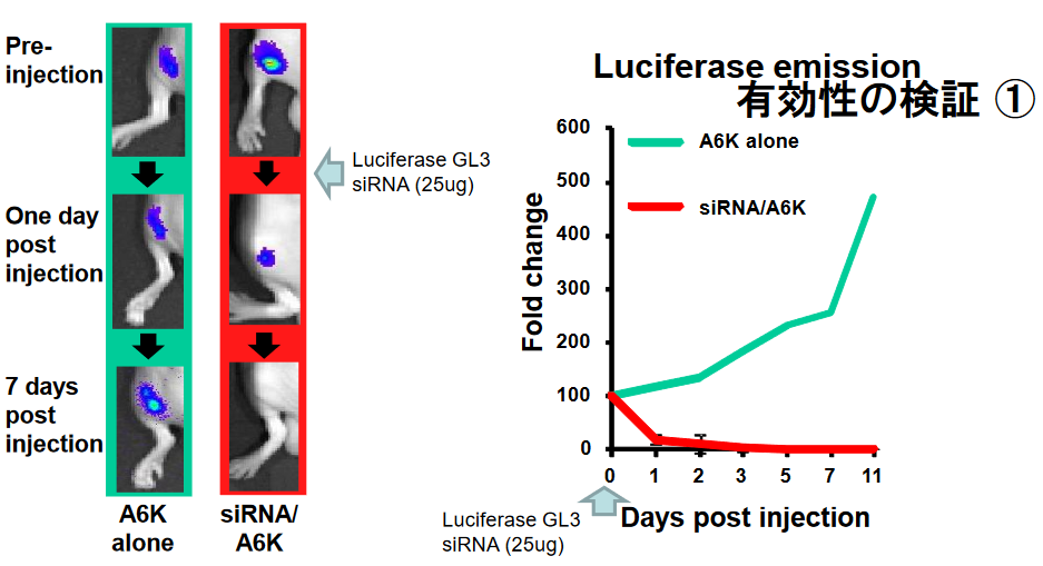なんてったって「A6K」に「siRNA」を混ぜ合わせるだけで、あとは勝手に複合体を形成してくれるので。