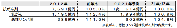 国内の抗がん剤のうち、乳がん向けの抗がん剤は1,000億を超える大きなマーケットとなっています。