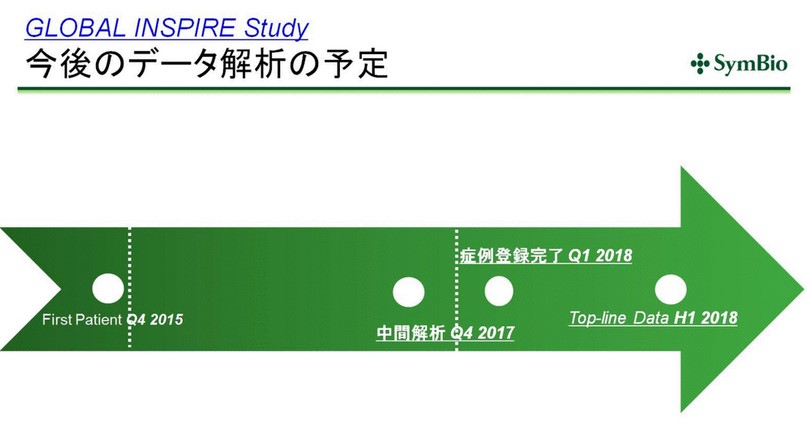 2018年の1Qまでに症例登録を完了、2018年の上半期にトップラインデータの公表を予定しています。