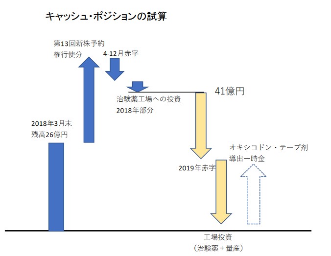 今回のレポートで、増資期間中に起こり得る株価かち上げイベントの筆頭材料であった「オキシコドンテープ導出」の可能性が小さくなった、と捉えることもできます。