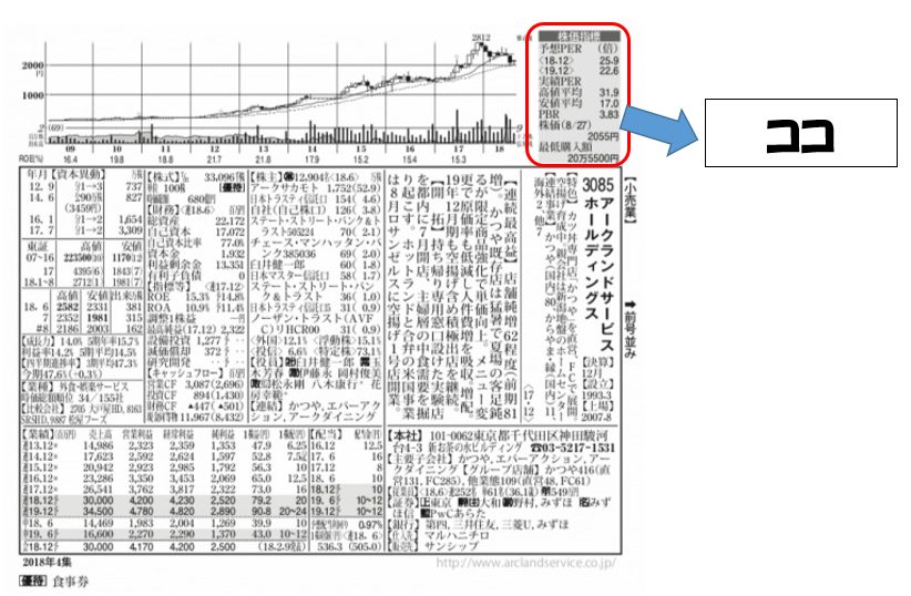 PERとPBRは四季報の株価指標欄に出ています。