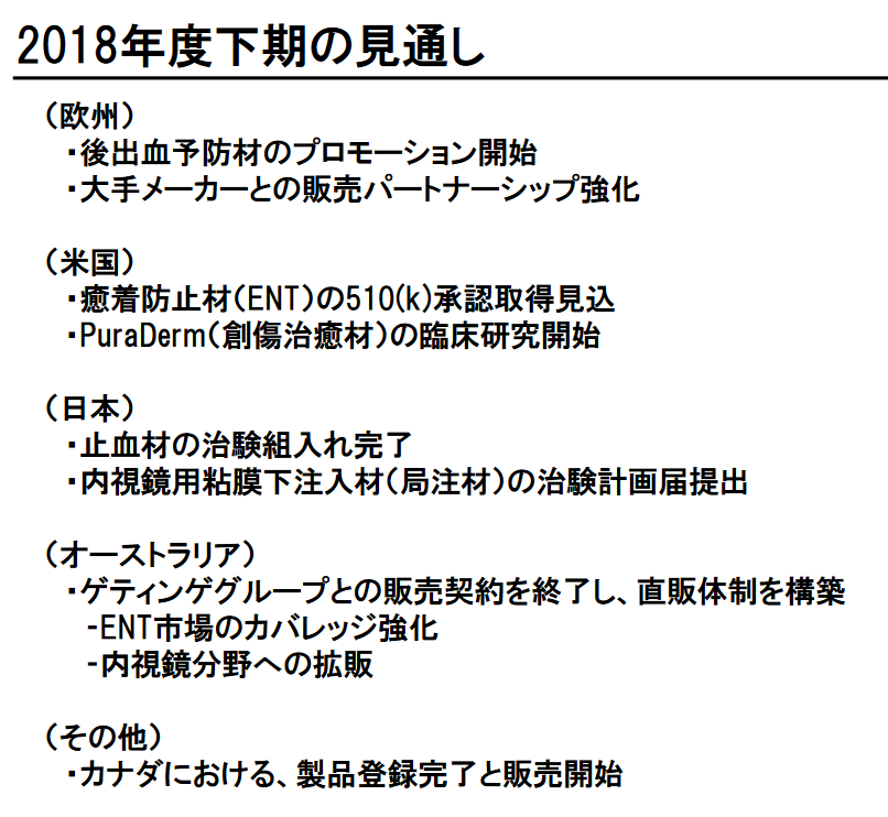 私の考えは「止血材組み入れ完了=粘膜注入材治験届け提出>癒着防止材取得>>>大手メーカー提携」です