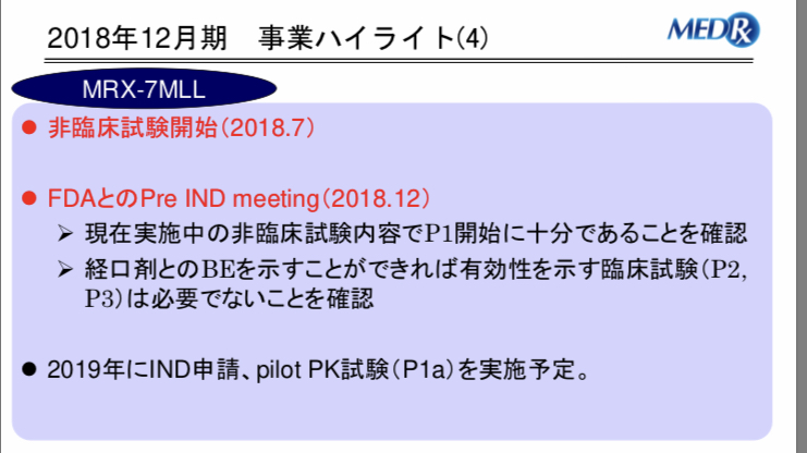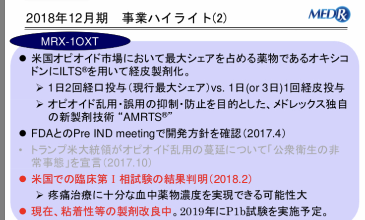 出典:メドレックス2018年12月期決算説明会資料