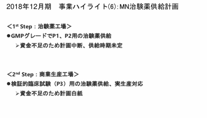 工場が建てられなくなったので、当たり前ですが今期見込んでいた治験薬供給も未定となりました。