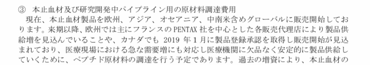 私はてっきり欧州全域でのPurastat(CEマーク取得領域)の独占販売権を売るものとばかり思っていましたが、「内視鏡領域」に限って売るという手法もあるんですね。