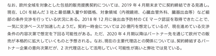 18日にレポートを出して、「2019 年 4 月期末までに契約締結できる見通し」って来たもんだ。