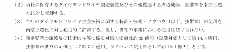 まずは何と言ってもダイヤモンドワイヤ生産設備と技術供与による一時金収入です。