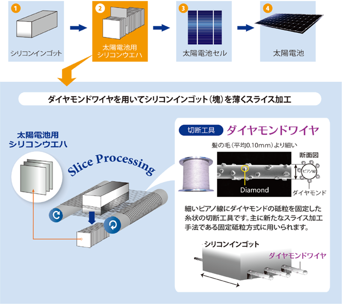 特に太陽光発電が急速に普及している中国では、「お前のところの細麺っぷりが半端ないな!」ってことで、中村超硬さんのダイヤモンドワイヤは大人気に。