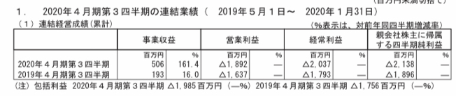 出典:3Dマトリックス2020年4月期3Q決算短信