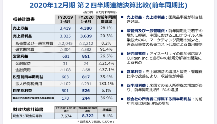 今回の「フェイズ2成功IR」の中では、「中国市場での上市ならびに米国、日本における可能性の検討について、2020年9月下旬から10月上旬をめどに示したい」とのこと。