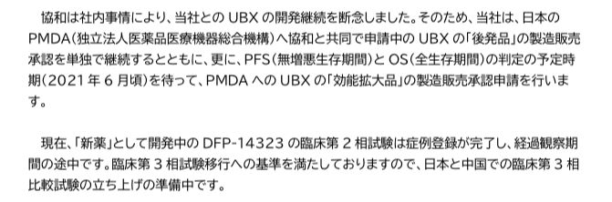 それが、提携解除のIRによって、期せずしてウベニメクスと14323の開発の流れが判明。