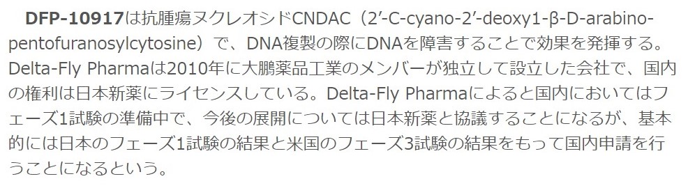 具体的に見てみましょう。一番進んでいるパイプラインである白血病の治療薬「DFP-10917」はこれ。